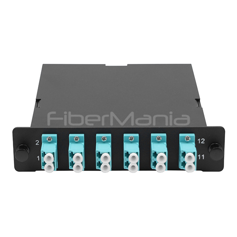Кассета MPO/MTP, способная принимать от 6 до 24 волокон. Эти кассеты подходят для использования с одномодовыми, многомодовыми 62,5 и 50 мкм, а также для приложений, оптимизированных для лазера, OM3, и доступны с разъемами LC, SC, ST, FC, MTRJ. Кассета MPO/MTP поставляется с предустановленными адаптерами с керамическими гильзами из диоксида циркония для улучшенной совместимости со всеми приложениями. Адаптеры имеют цветовую кодировку в соответствии с используемым приложением (синий = 9/125; бежевый = 62,5 и 50 мкм; Aqua = OM3; зеленый = APC). Все адаптеры поставляются в стандартной комплектации с пылезащитными крышками.